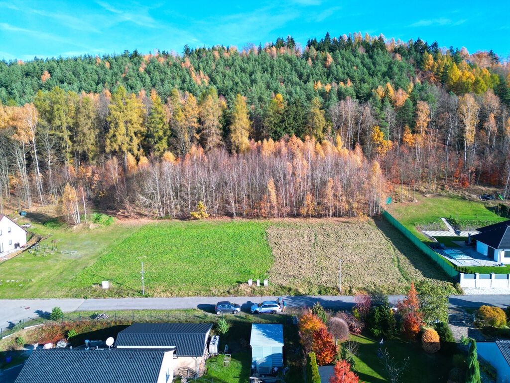 Dle nového územního plánu jsou ochranné pásmo lesa i uliční čáry pouze doporučením, nikoliv závazným omezením. V okolí je velmi rozmanitá zástavba, což vám dává dostatek volnosti pro vytvoření domu přesně podle vašich představ.