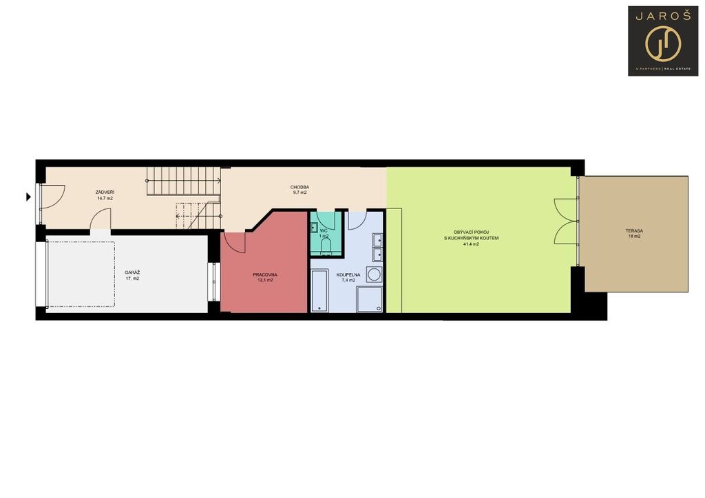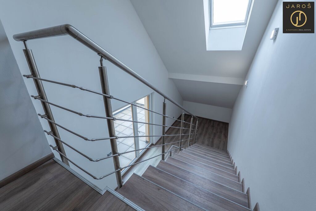 Nabízíme vám k prodeji moderní řadový rodinný dům o dispozici 5+kk s celkovou plochou 234 m² v projektu Rezidence Park Svitavy. Dům nabízí prostorný obývací pokoj s kuchyňským koutem, který přímo navazuje na terasu a zahradu směrem do parku. V přízemí se dále nachází koupelna, pracovna a zádveří. Mezipatro nabízí vstup na terasu směrem do ulice. V patře jsou čtyři samostatné pokoje, koupelna a balkon s příjemným výhledem do zeleně, přístupný z obou pokojů. Součástí je také garáž přístupná ze vstupní chodby a dvě parkovací stání přímo před domem.