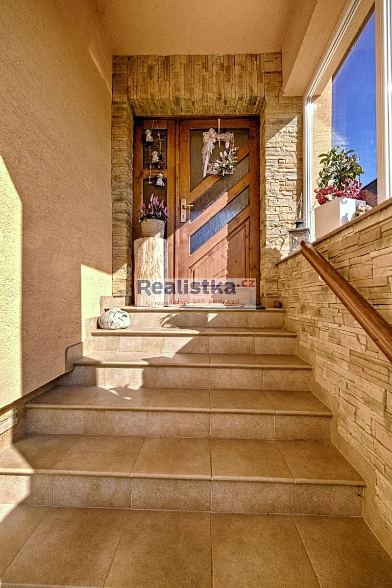 Dominantou je hlavní rodinný dům 3+kk s moderním interiérem, velkým obývacím pokojem s krbem, luxusně vybavenou kuchyní Gorenje a pokoj s terasou v patře. Dům je kompletně podsklepen (100 m²) a poskytuje tak velkorysé úložné i užitné prostory.