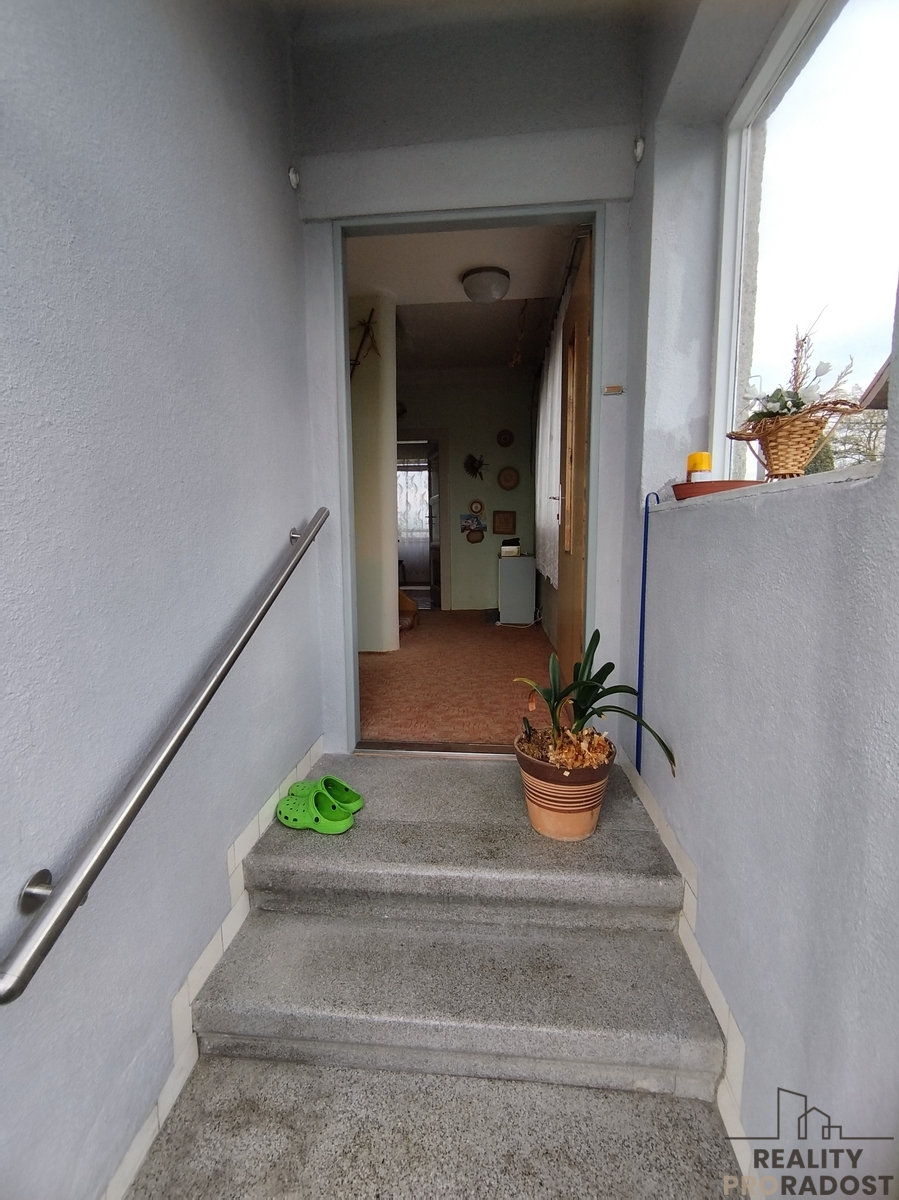 Dispoziční řešení: v prvním podlaží se nachází garáž a sklepní prostory. Do garáže, která je propojená se sklepními prostory, se vjíždí vydlážděnou cestou přes předzahrádku. Ve zvýšeném přízemí je dispozice 2+1 a vstupní hala, koupelna, samostatné WC, vstup do sklepního prostoru a schodiště do prvního patra, ve kterém je další pokoj a půdní prostor, který lze využít na zbudování dalšího pokoje.