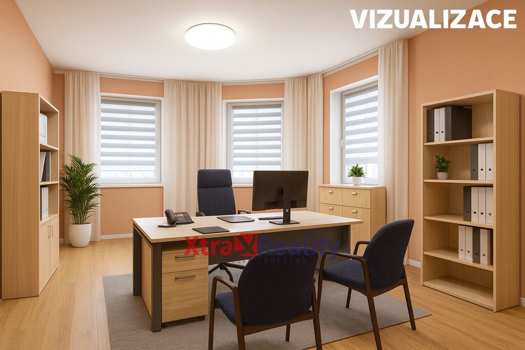 V přízemí nalezneme již zmiňovanou garáž, kancelář, která se nachází hned u vstupních dveří a návštěva tak nebude narušovat rodinný život; dále komoru, kotelnu, prádelnu a další místnost, která může sloužit na uskladnění sezónních věcí.