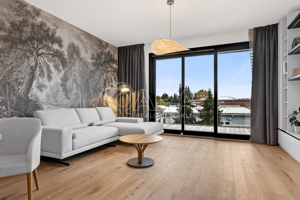 Byt je vybaven stropním vytápěním a chlazením, centrálním větráním s rekuperací, venkovními žaluziemi a chytrou domácností, kterou lze ovládat na dálku. Kvalitní dřevěné podlahy, vestavěný nábytek a prvotřídní spotřebiče tvoří harmonický celek, který uspokojí i ty nejnáročnější nájemce.
