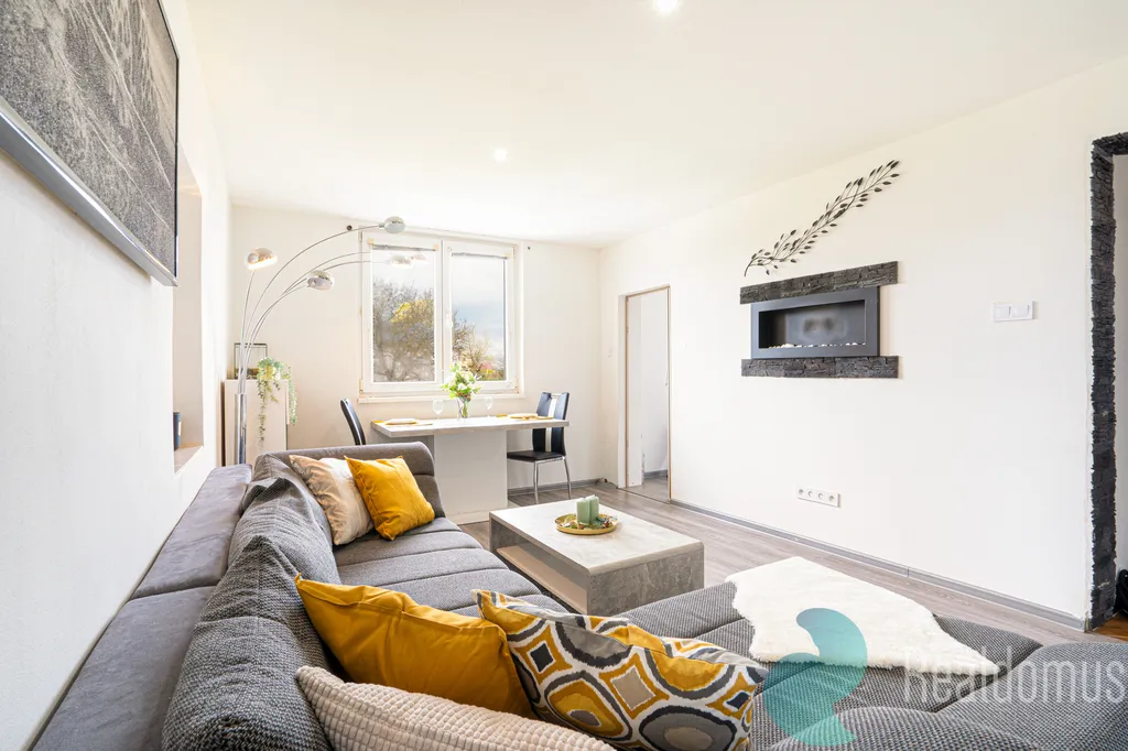 Po vstupu do bytu chodba s vestavěnou skříní. Chodba je spojena s otevřeným a prostorným obývacím pokojem a kuchyní. Vkusná, moderní koupelna s vanou. Za obývacím pokojem je samostatný, přepažený pokoj, odkud je vstup do ložnice.