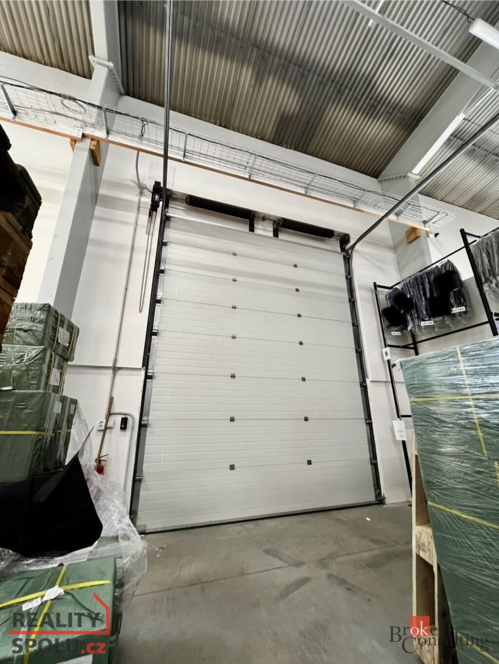 V přízemí se nachází skladovací/výrobní hala o výměře 610 m2, výška haly 8,8 m, se sekvenčními vraty o výšce 4,4 m na dálkové ovládání.