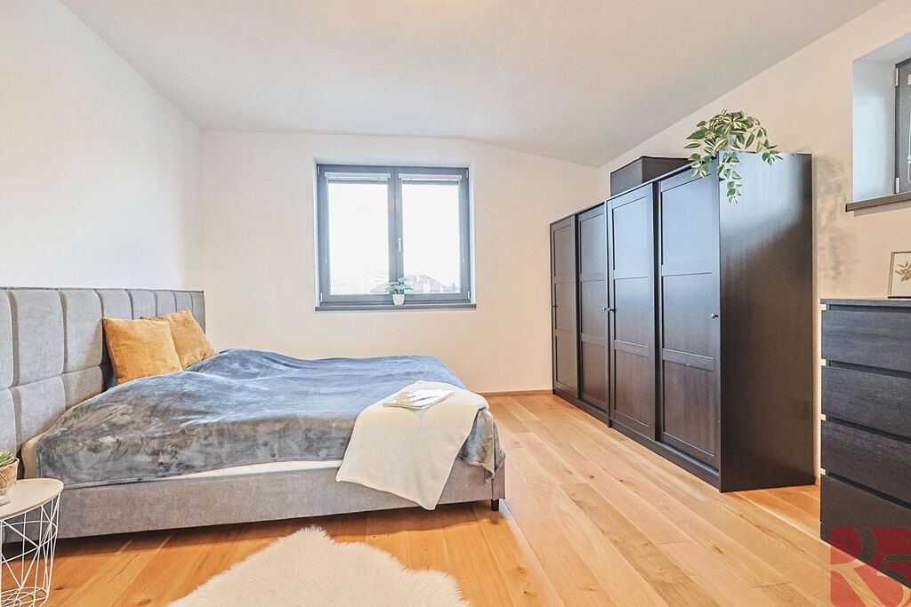 Exkluzivně prodej moderní novostavby 3kk 74m2 v Rezidenci Slepá, terasa 9m2, balkon 8m2, garáž 30m2, sklep 2m2 a společná zahrada 150m2.