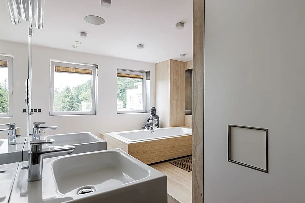 Exkluzivní byt s rozlehlou terasou, nádhernými výhledy a jedinečnou atmosférou, která je zvýrazněna designem a vzdušností, je součástí bytové vily vybavené výtahem a parkováním. Tato vila s pouhými 12 bytovými jednotkami se nachází na pomezí lesa v klidné slepé ulici v oblíbené rezidenční čtvrti s tradiční vilovou zástavbou.