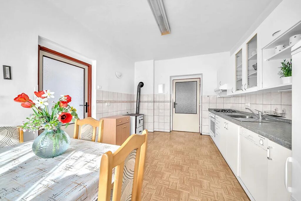 K prodeji je polořadový dům s celkovou podlahovou plochou 267 m2 o dispozicích 6+kk s balkonem, garáží, velkorysými skladovacími a dílenskými prostorami, a také funkčním skleníkem. Dům je částečně podsklepen. Rekonstrukce domu proběhla v roce 1975.