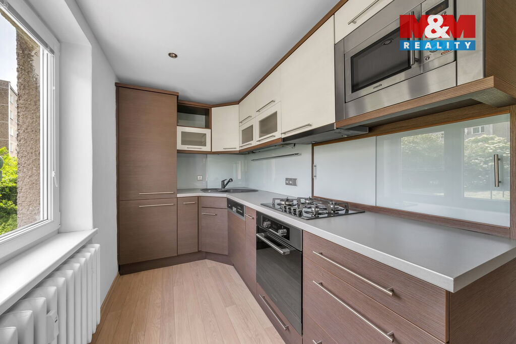 Výhodami tohoto bytu je praktická dispozice, balkon s hezkým výhledem, prostorný sklep a klidná lokalita.