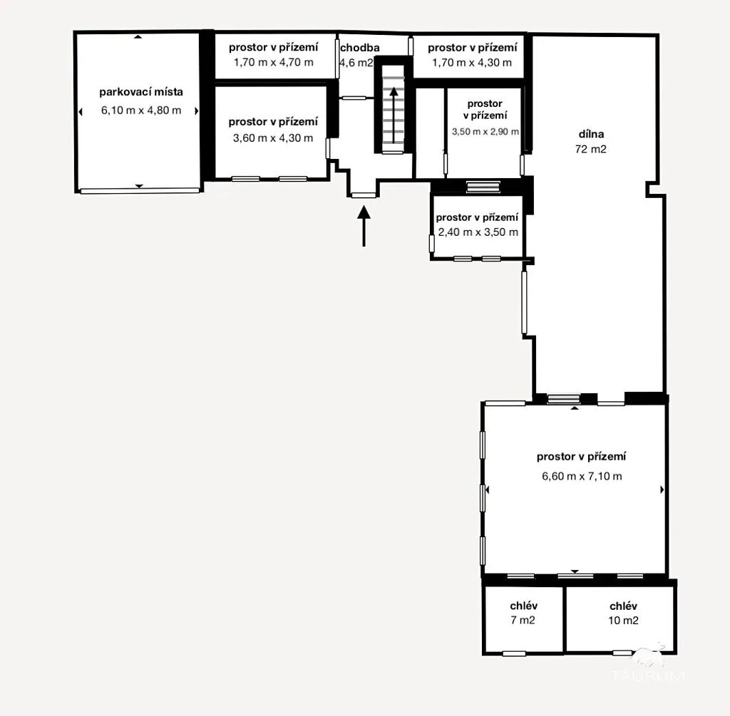 a bývalá prádelna s přímým vstupem na pozemek. Součástí domu je dílna a k ní později přistavěná druhá dílna. Na pozemku se nachází také bývalé zemědělské stavby – například chlévy a menší stodola, které lze přetvořit na sklad, garáž nebo prostor pro hobby či drobné podnikání. V obytné části se nachází kuchyně, obývací pokoj a dva pokoje – tedy dispozice 3+1. Dále je zde koupelna a WC. Nad obytnou částí se nachází půdní prostor, vhodný pro uskladnění věcí.