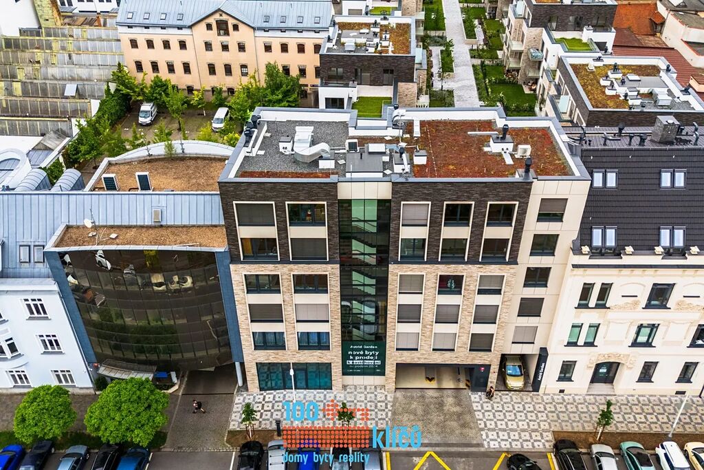 Byt má 50 m² podlahové plochy, je plně vybaven a patří k němu parkovací stání v podzemní garáži a vlastní sklep.