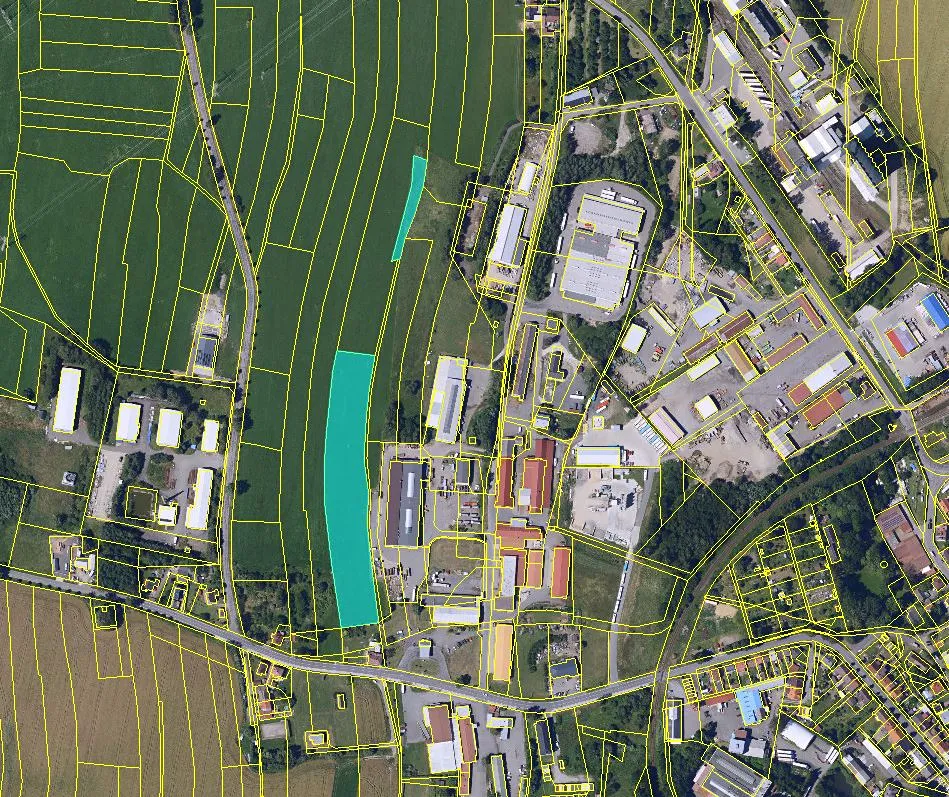Dvě parcely o výměře 11.904m2 vedeny v územním plánu jako plochy výroby a skladování.