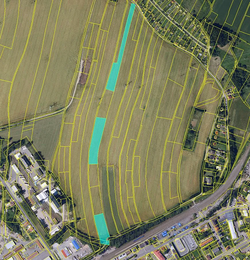 Soubor pozemků o celkové rozloze 3,6 ha.