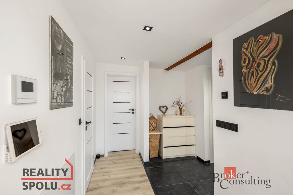 Moderní dvoupodlažní dům s komfortem a technologií pro budoucnost. Díky chytrému systému zvládnete ovládat osvětlení, topení, rolety i vstup na dálku.
