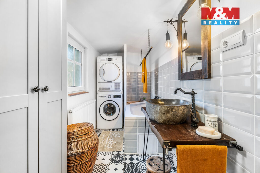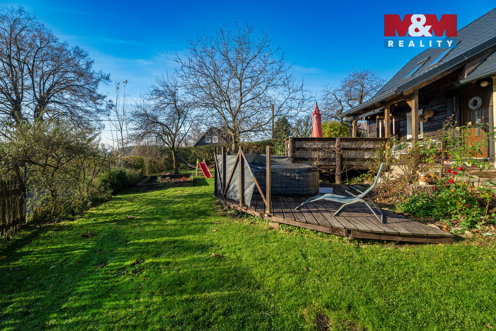 Na úpatí Ještědu, v Rozstání ve Světlé pod Ještědem, nabízíme stylovou chalupu, která prošla postupnou rekonstrukcí s citem pro detail. Dům spojuje původní atmosféru s moderním komfortem a je vhodný jak pro trvalé bydlení, tak rekreaci. Užitná plocha činí 185 m², zastavěná 119 m², pozemek má 842 m² se stodolou a parkováním na zahradě. V přízemí se nachází obývací pokoj, samostatná kuchyně, koupelna s vanou a samostatné WC. V podkroví pak ložnice, velký dětský pokoj a pracovní kout. Vytápění zajišťuje automatický kotel na pelety řízený WiFi termostatem, ohřev vody zajištěn bojlerem. Dům má hliníkovou střechu, veřejný vodovod, septik s přepadem. Udržovaná zahrada je oplocená, s terasou, krytým posezením a místem pro relax a vířivku. Nemovitost je využívána k trvalému bydlení. Dojezd do Liberce 15 minut, Českého Dubu 7 km, Osečné 9 km.