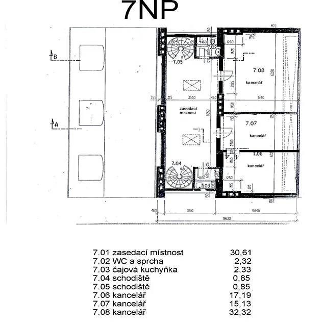 Kanceláře jsou orientovány do klidného dvora a aktuálně rozčleněny na jeden velký světlý prostor o výměře 47 m2 se dvěma vstupy (lze místnost rozdělit na dvě) + kancelář (17 m2)+ kancelář/recepce (30 m2) se střešními okny a zázemí (čajová kuchyňka, WC se sprch. koutem a umyvadlem). Klimatizace k dispozici. Internet UPC/Vodafone, ADSL. Bezpečnostní dveře, el. vrátný.