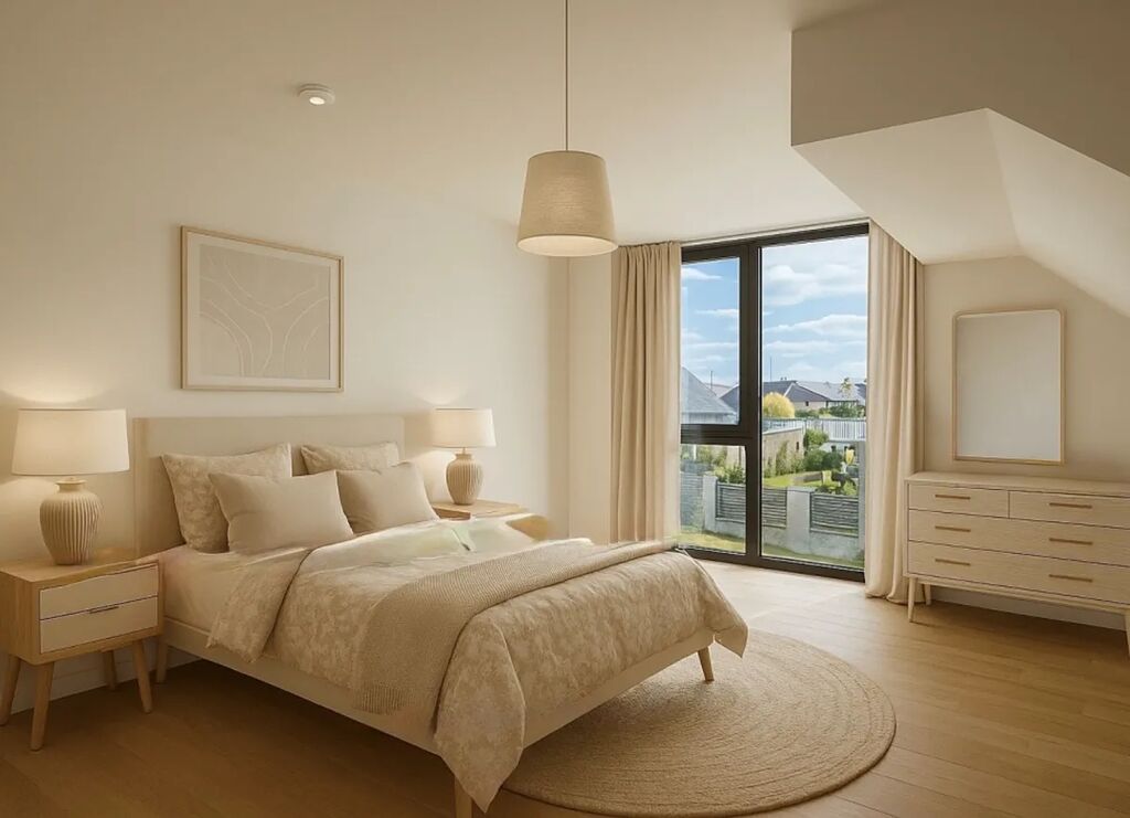 Do domu vstoupíte elegantními hliníkovými dveřmi v antracitu, sladěnými s okny s trojskly a s přípravou na instalaci elektrických interiérových žaluzií. Interiér doplňují bezfalcové dveře s magnetickými zámky značky Vekra, které vytvářejí čistou moderní linii. V přízemí vás provede velkoformátová dlažba, zatímco v patře zahřeje dřevěná podlaha dub Harmony. Teplo i letní chlazení zajišťuje tepelné čerpadlo Stiebel Eltron, v každém pokoji doplněné vlastním termostatem umožňujícím individuální nastavení teploty. Samozřejmostí je podlahové vytápění a rekuperace.