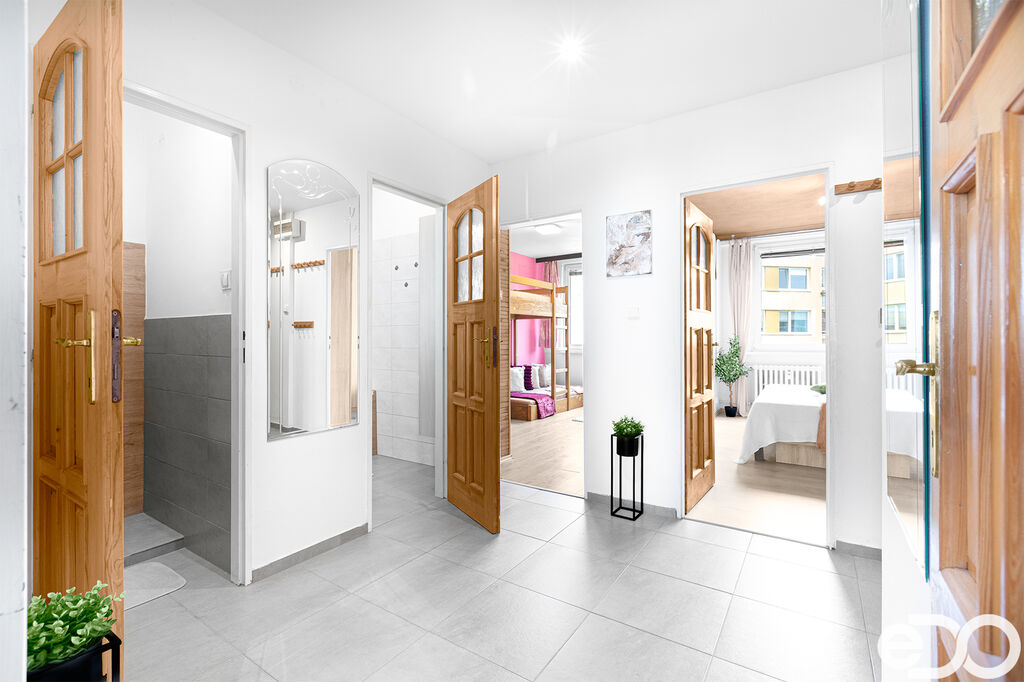 Velmi rád bych vám v zastoupení majitele nabídl k prodeji bytovou jednotku s jedinečným a neopakovatelným výhledem na Prahu o dispozici 3+kk a celkové ploše 76 m2, která se nachází ve 4. patře bez výtahu revitalizovaného panelového domu v ulici Libišská s jedinečným výhledem na Prahu. Jednotka prošla před pár lety rozsáhlou rekonstrukcí vč. koupelny, podlah a rozvodů. Nabízí dvě neprůchozí ložnice, koupelnu s vanou a pračkou, samostatnou toaletu a komoru v chodbě. Prostorný obývací pokoj je spojen s kuchyní, která je vybavena kompletně spotřebiči, nábytek na fotografiích je součástí jednotky, jež se pronajímá vybavená. Vytápění je dálkové, podlahy, plovoucí + dlažba, okna na dvě světové strany.
