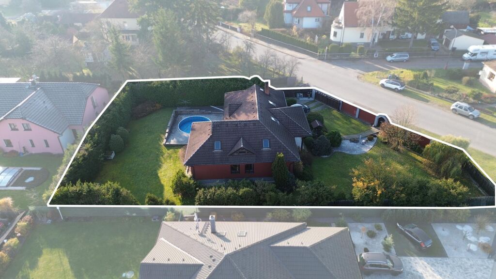 Prodej velmi pěkného - moderního rodinného domu o velikosti 5 + 1 + 2 x koupelna a WC s terasou, bazénem a zahradou na okraji městečka Rožmitál pod Třemšínem, ulice Sladkovského 761. Dům je moderně stavěný a je z roku 2020. Rožmitál p. Tř. je napojený na pražskou autobusovou integrovanou dopravu - pid. Dobré autobusové spojení na Prahu -a Příbram, dále Plzeň. U Rožmitálu začínají husté Brdské lesy. V Rožmitále p. Tř. je veškerá občanská vybavenost - obchody, škola, školka, lékař a další. Popis domu : suterén - částečně podsklepeno - kotelna a uhelna / moderní kotel ústředního topení na pevná paliva se zásobníkem /, úložné prostory a místnost pod garáží - montážní jáma. Přízemí - vstupní chodba a zádveří, velká hlavní obytná místnost s napojením na kuchyň a jídelnu a vstupem na terasu, 2 samostatné ložnice / jedna je se vstupem na terasu /, koupelna a WC, vstup do garáže - parkování na 1 auto - úložné prostory, vstup do suterénu. Podkroví - 2 samostatné velké pokoje / zatím je dodělán 1 pokoj /, koupelna a WC. Za domem je velká terasa s menším zapuštěným bazénem. Pěkná udržovaná zahrada. Celý pozemek je oplocen. Vybavenost : elektřina 220/380V, obecní vodovod a kanalizace, ústřední topení - radiátory a kotel na pevná paliva se zásobníkem. Plánky domu jsou ve fotkách. Dobré a klidné bydlení. Podrobné informace v RK. Prohlídky domu po domluvě.