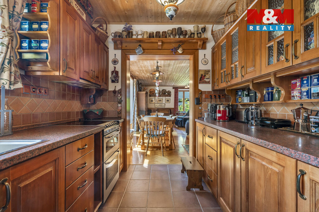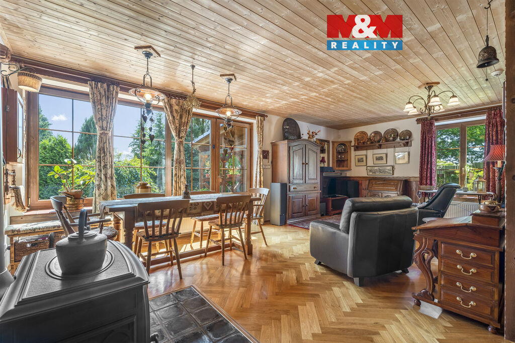 SLEVA !!! Nabízíme k prodeji atraktivní novostavbu rodinného domu v klidné a žádané lokalitě České Kamenice. Dům o užitné ploše 138 m² je situován na upraveném pozemku o rozloze 799 m² s okrasnou zahradou, která poskytuje dostatek soukromí i prostoru pro relaxaci a rodinné aktivity. V přízemí domu se nachází moderní kuchyň, prostorný obývací pokoj propojený s jídelnou a přímým vstupem na slunnou terasu s pergolou, ideální pro posezení s rodinou či přáteli. Dále je zde koupelna se sprchovým koutem. V patře najdete komfortní ložnici, dva samostatné pokoje vhodné jako dětské či pracovny, a druhou koupelnu vybavenou vanou a WC. Půda je přístupná zateplenými, stahovacími schody a nabízí další úložný prostor. Interiér domu je laděn v přírodních tónech s důrazem na kvalitu použitých materiálů – v obytných místnostech jsou dubové parkety, stropy a podkroví jsou obloženy dřevem, točité schodiště i zábradlí jsou rovněž z masivního dubu. Dům je vybaven elektronickým zabezpečovacím systémem (EZS).