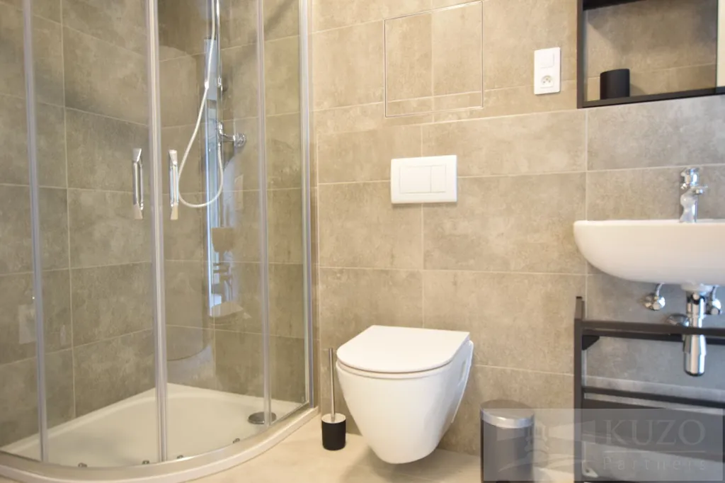 Byt o obytné ploše 32 m² se nachází v 5. nadzemním podlaží moderního domu. Součástí je lodžie (2,34 m²), sklep (2,59 m²) a zakladačové parkovací stání.