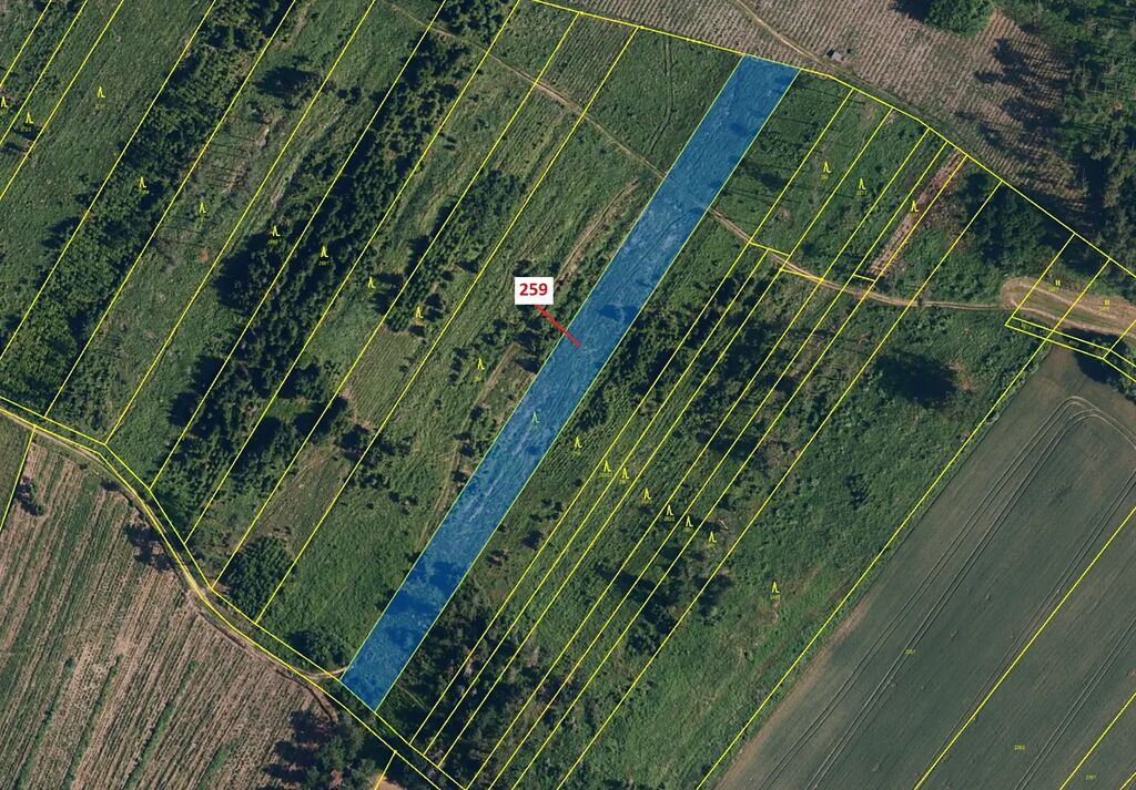 Lesní pozemek o výměře 6 645 m2, parcelní číslo 259, podíl 1/1, katastrální území Vícenice u Dolních Lažan, obec Vícenice, obec s rozšířenou působností Moravské Budějovice, okres Třebíč, Kraj Vysočina. .