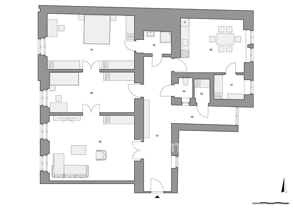 Byt je v zachovalém stavu a určený k rekonstrukci dle představ nového majitele. Výhodou jsou vysoké stropy, díky kterým lze jednotku citlivě zrenovovat a zachovat tak charakter interiéru.