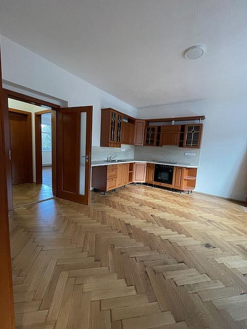 Byt prošel kompletní a nákladnou rekonstrukcí všude jsou krásné zbroušené a nově lakované parkety, dřevěná kuchyň v jednotném dekoru, stejně jako dveře a zárubně. V předsíni je velká vestavěná skříň, která nabízí dostatek úložného prostoru.