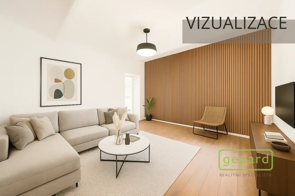 Pro lepší představu o dispozici bytu si projděte virtuální 3D prohlídku, která je součástí prezentace. A pokud vás zajímá, jak by mohl prostor vypadat po rekonstrukci, nahlédněte do přiložených vizualizací, které ukazují jeho skutečný potenciál.