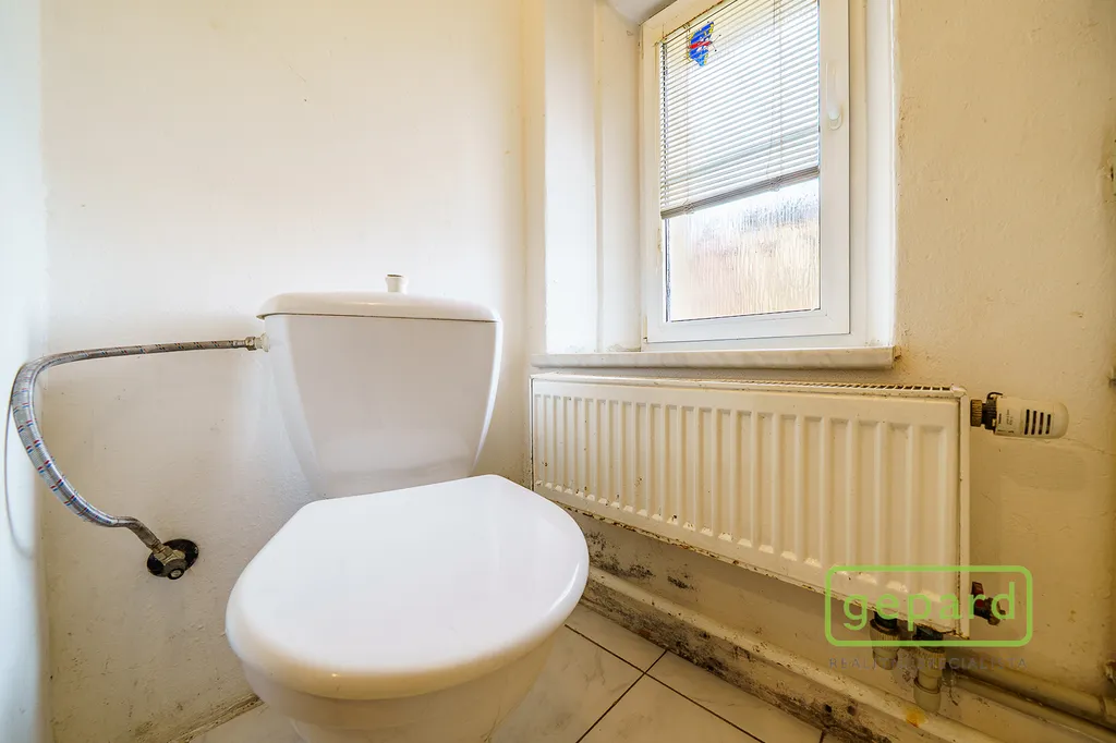 Orientace kuchyně a ložnice do zahrady zajišťuje klid a příjemný výhled, přestože se dům nachází u hlavní městské tepny. Výhodou je také možnost využívat společnou zahradu – místo pro odpočinek nebo posezení nájemníků.
