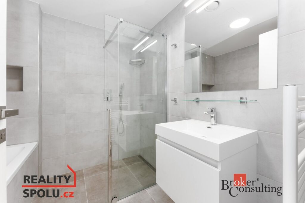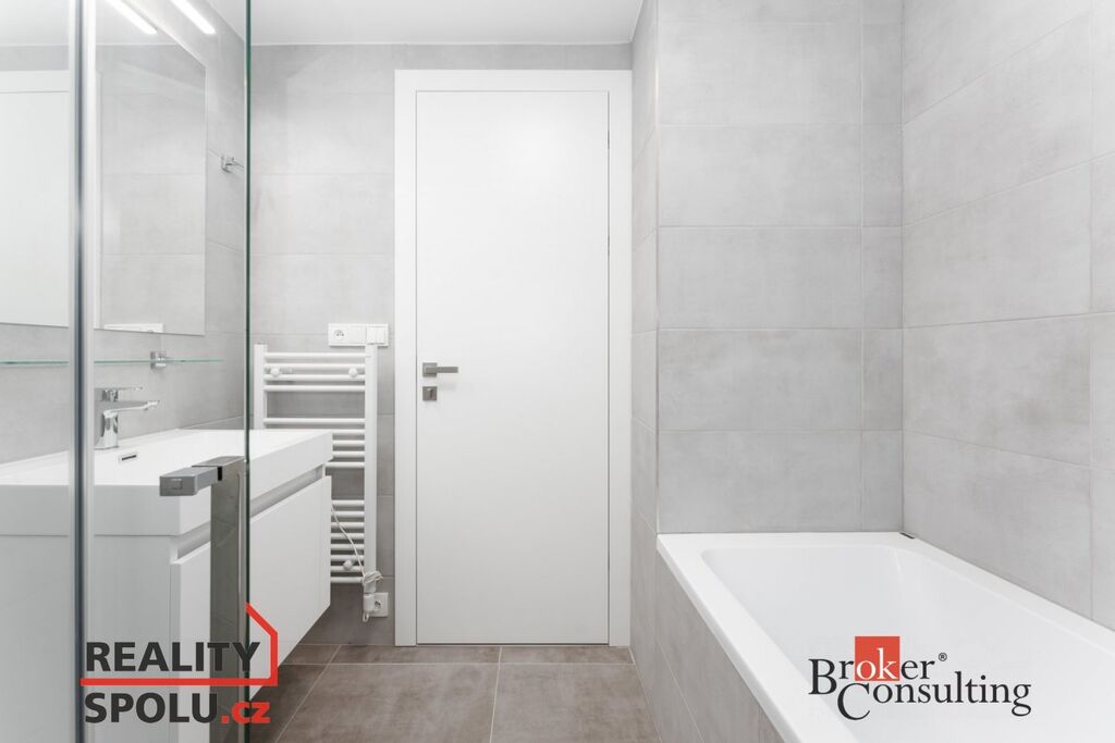 • Prémiové materiály: vinylové podlahy, bezfalcové interiérové dveře, v koupelně obklady až do stropu, podomítkové baterie.