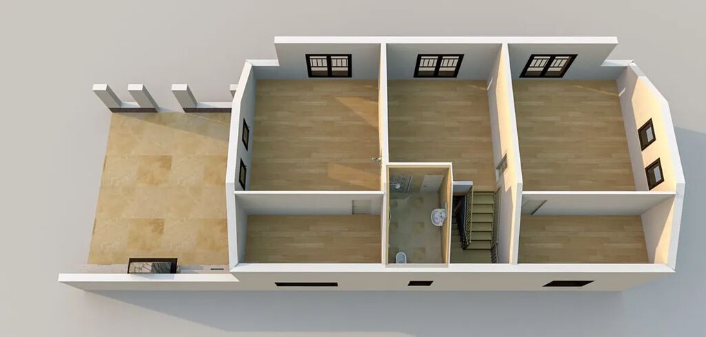 V 2. nadzemním podlaží se nachází 3x pokoj, koupelna a schodiště, podlahová plocha 113,36 m2.