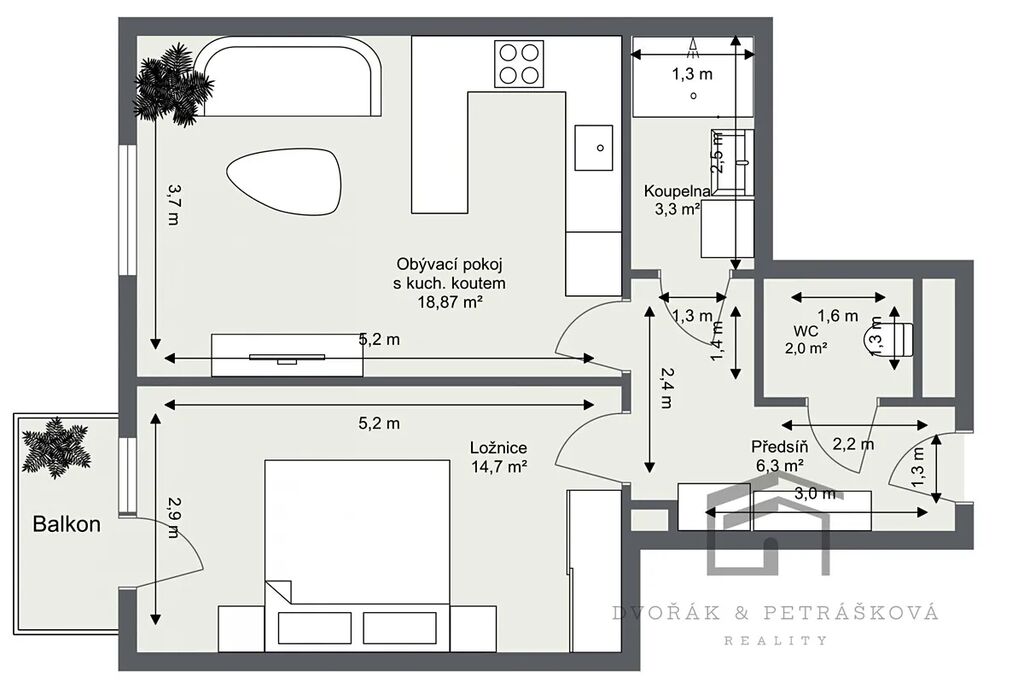 Realitní společnost Dvořák & Petrášková reality vám nabízí k pronájmu byt v osobním vlastnictví o dispozici 2+kk s balkónem a sklepem v pražských Vršovicích. Neplatíte provizi RK.