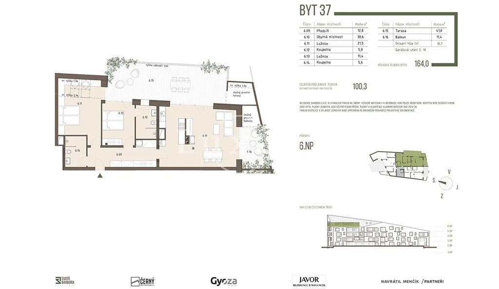 Nabízíme k prodeji apartmán v projektu Rezidence Svatá Barbora. Apartmán o dispozici 3+kk a podlahové ploše 100,3 m2 s terasou 41,6 m2 a balkonem 11,4 m2 se nachází v 6. NP novostavby s plánovanou kolaudací od 2Q 2027.