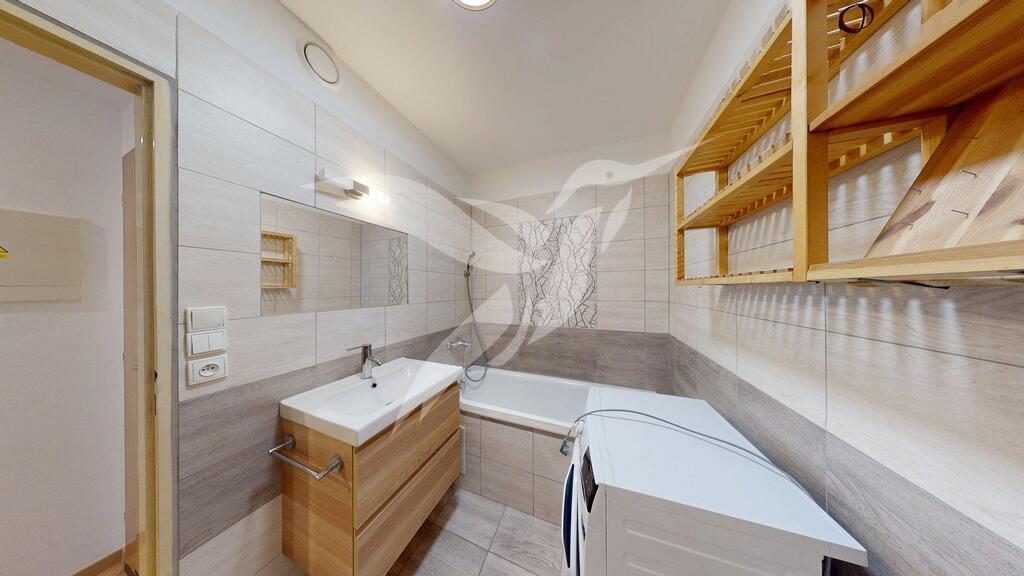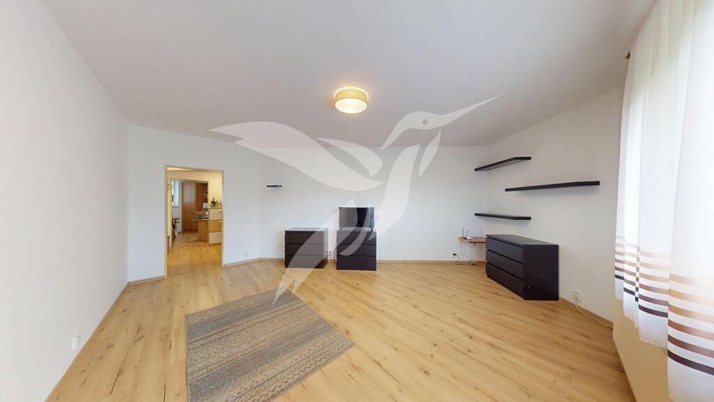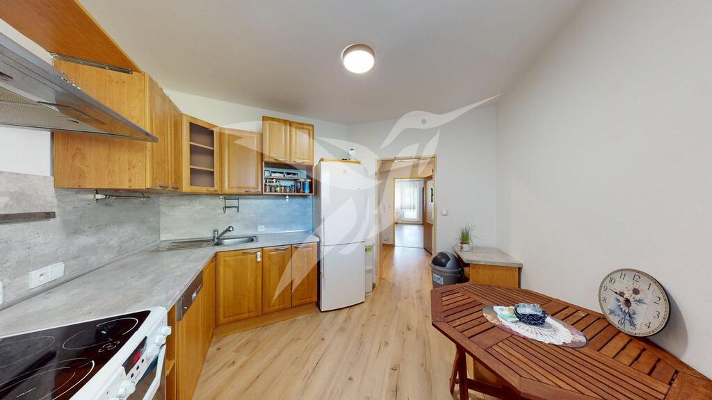Bytová jednotka o velikosti 59 m2 se nachází v 1. NP (přízemí) cihlového domu bez výtahu a skládá se z předsíně, pokoje včetně kuchyňské linky, samostatného pokoje s přístupem do šatny, samostatného pokoje s terasou, koupelny, toalety a k bytu náleží i sklepní kóje, která je situována v suterénu bytového domu. Byt se pronajímá jako částečně zařízený a jeho součásti je kuchyňská linka se spotřebiči (kombinovaná chladnička, elektrický sporák + digestoř, vestavěná myčka), dále automatická pračka se sušičkou, komody a skříně na úložný prostor. Vytápění a ohřev vody je zajištěn dálkovými dodávkami.