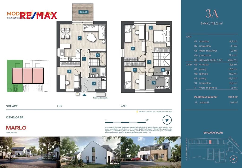 Domy vznikly pod taktovkou developerské společnosti Marlo, která díky svým dlouholetým zkušenostem zaručuje vysoký standard zpracování. Domy se nacházejí v ulici Radimova, v klidné části města s komfortním spojením do Prahy do 50 minut. Celý projekt spojuje moderní architekturu, úsporné technologie a komfort přírody i města v jednom.