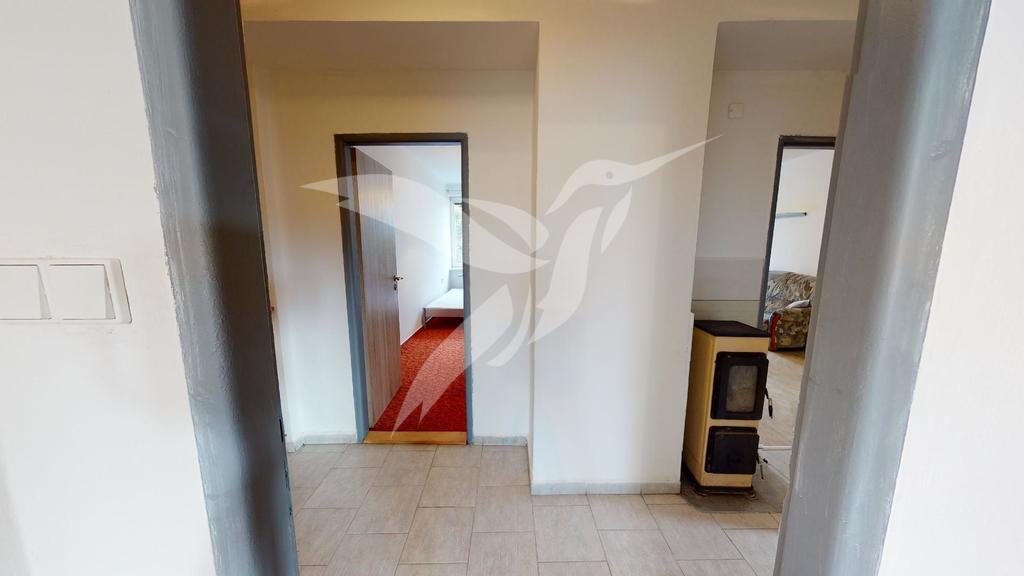 Nemovitost o velikosti 70 m2 se nachází v 2. NP cihlového domu bez výtahu a skládá se z předsíně a chodby, 3x samostatného pokoje, pokoje včetně kuchyňské linky, koupelny, toalety i komory na úložný prostor. Součásti vybavení je kuchyňská linka se spotřebiči (kombinovaný sporák, kombinovaná chladnička), dále jídelní stůl + židle, automatická pračka, šatní skříně. Vytápění zajišťují kamna na tuhá paliva a ohřev vody elektrický bojler.