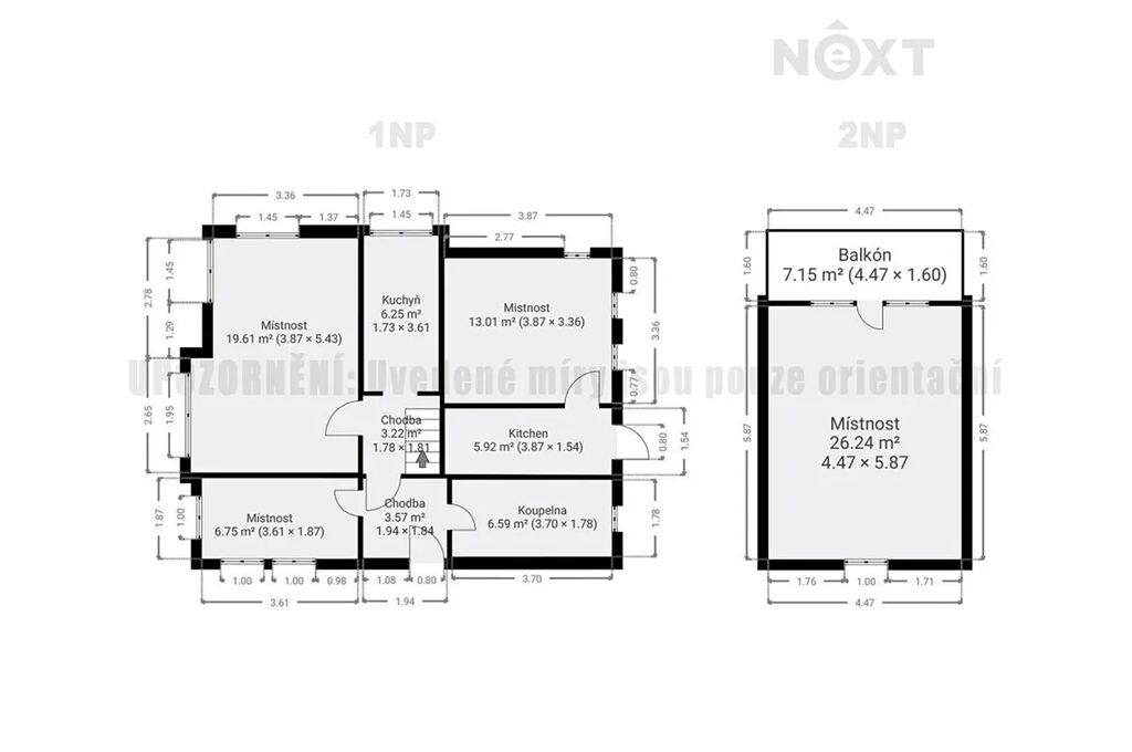 1NP - zádveří, veranda, obývací pokoj, kuchyně, pokoj, koupelna s WC - vana, prostor pro pračku