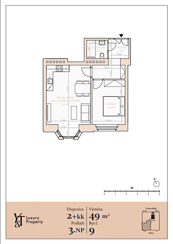 Nabízíme k pronájmu světlý byt 2+kk o velikosti 49,1 m² ve zrekonstruovaném historizujícím činžovním domě s prvky neorenezance a rané secese z roku 1890 v noblesní lokalitě Prahy. Tento byt se nachází ve 3. nadzemním podlaží s orientací do ulice a je vybaven hotovou koupelnou a kuchyňským koutem.