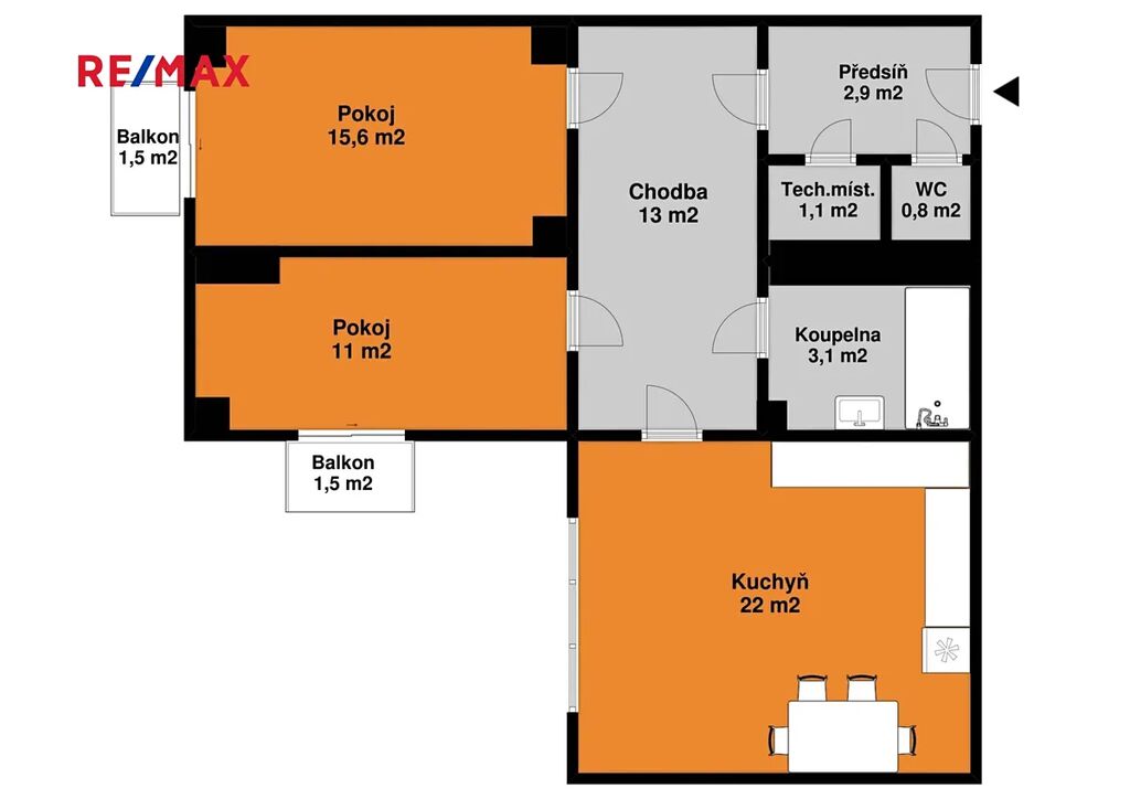 V komoře bytu je pračka. Jinak je byt nevybavený.