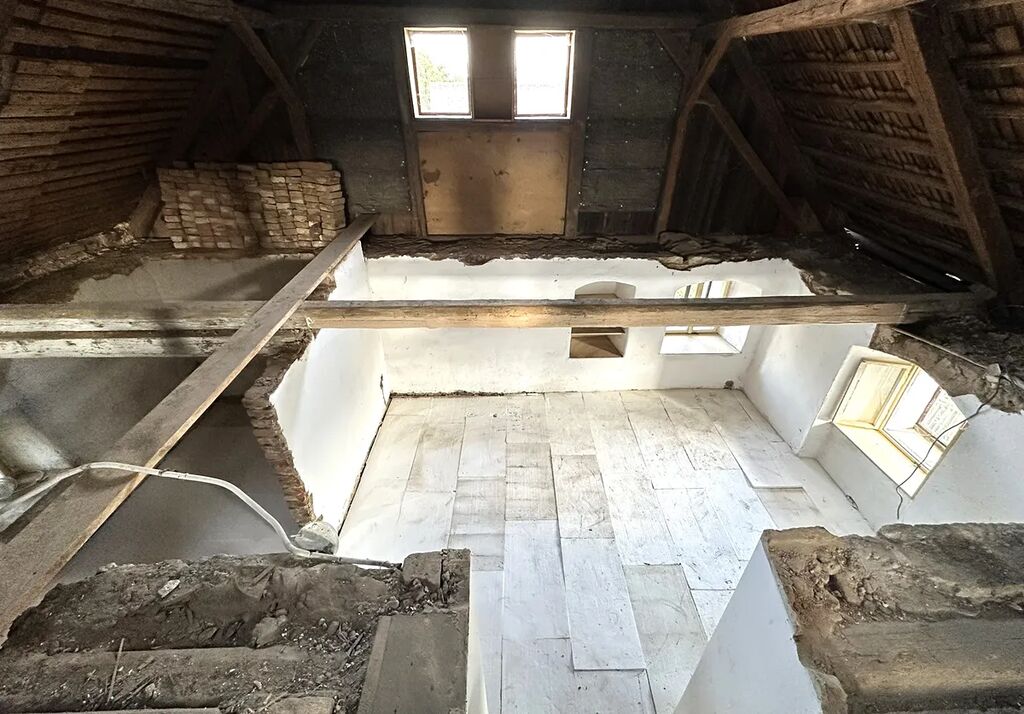 Do chalupy vstupujeme přes verandu, která má pěkný výhled na rybník a náves. Následuje vstupní chodba, prostorná kuchyně s jídelním koutem a obývacím pokojem. Část domu tvoří samostatná koupelna se sprchovým koutem a WC. Z chodby je možno vystoupit do podkroví, kde se nachází půdní prostory, které lze rozšířit na obytné místnosti.