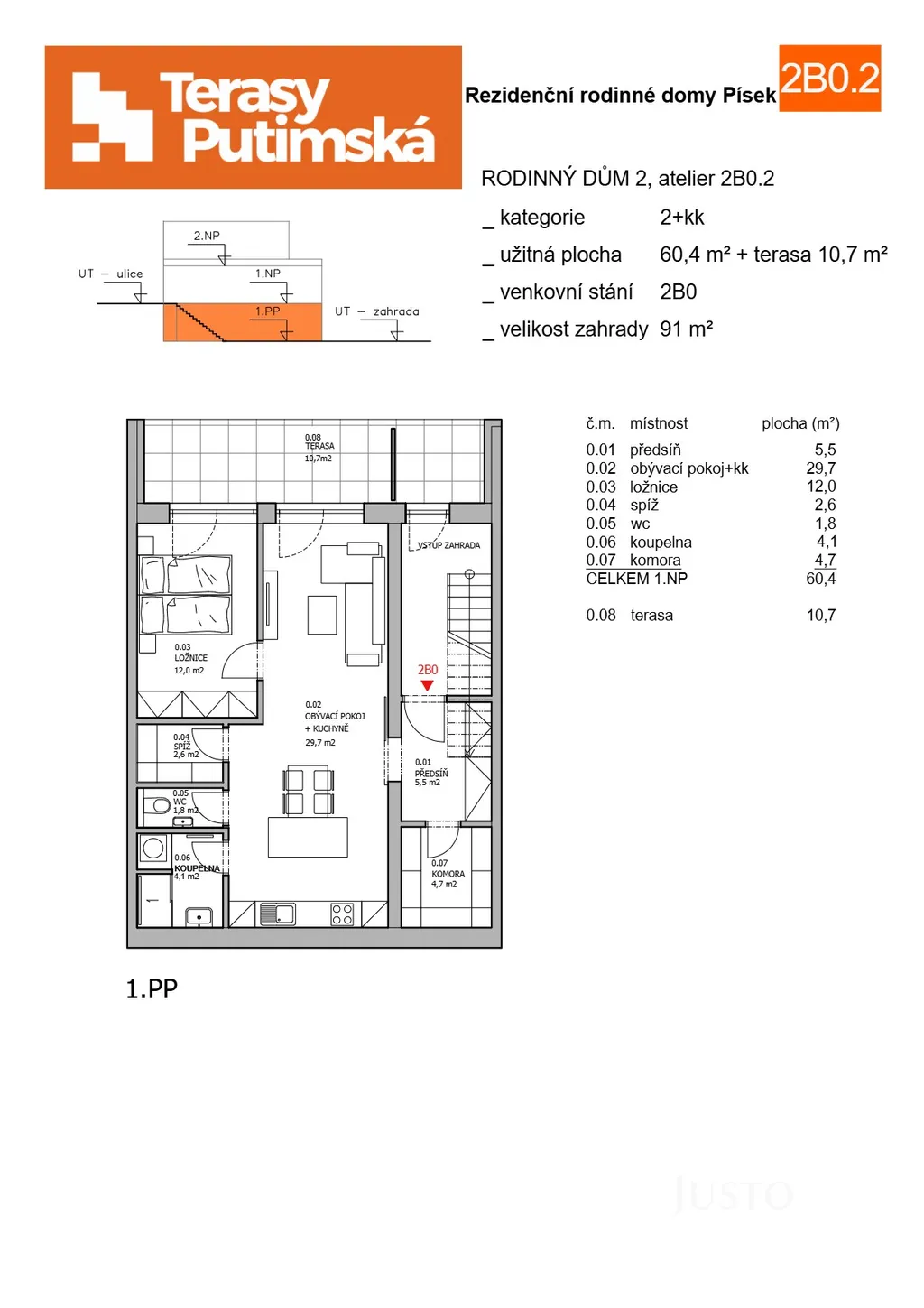 Novostavba – moderní byt ve výstavbě | 60,4 m² + zahrada 91 m² + terasa 10,7 m² + parkovací stání
