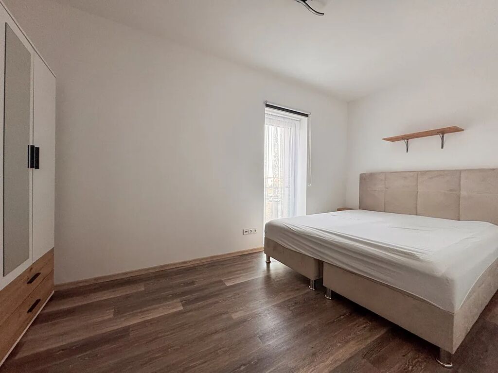 Byt dále disponuje dvěma neprůchozími ložnicemi. Hlavní ložnice je vybavena manželskou postelí a velkou šatní skříní, druhý pokoj nabízí praktické úložné řešení a může sloužit jako dětský pokoj, pracovna nebo pokoj pro hosty. Koupelna je zařízena v moderním stylu a je vybavena pračkou a sušičkou; toaleta je umístěna samostatně. Vstupní chodba poskytuje další úložný prostor díky botníku a věšákové stěně.