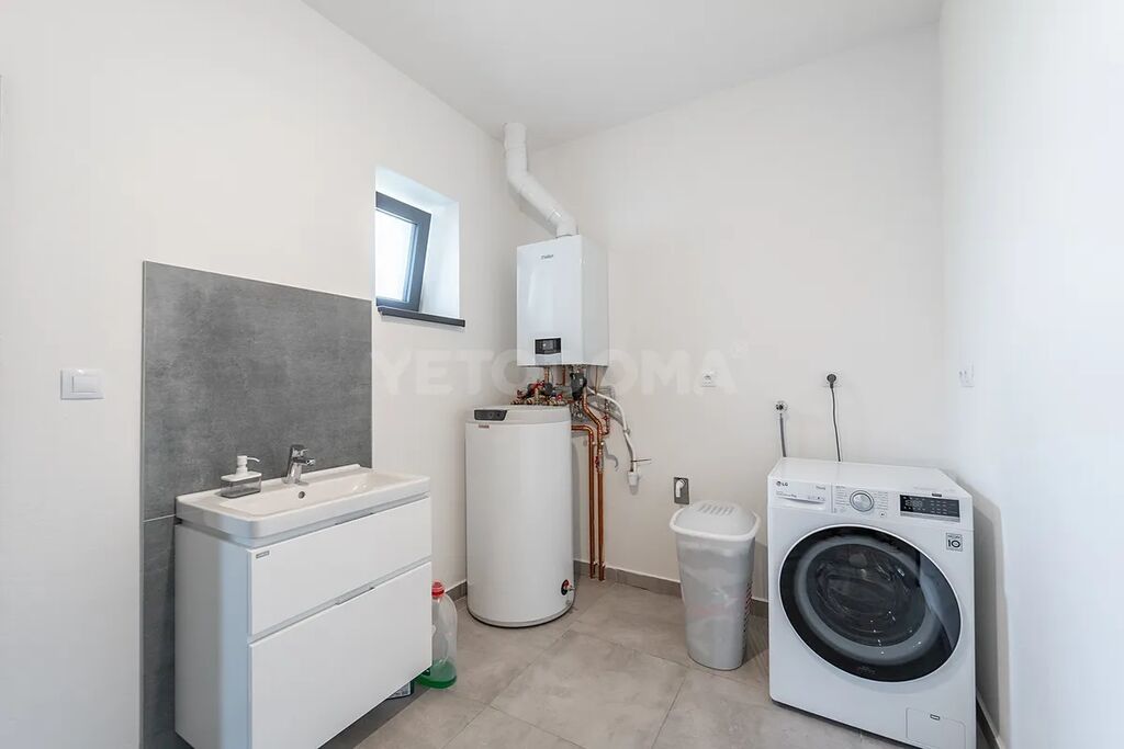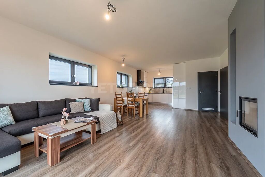 • Vytápění: Podlahové topení, plynový kotel, garáž vytápěná radiátory