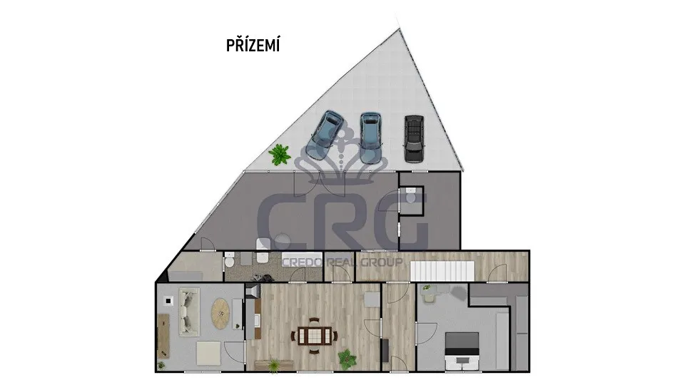 Při vstupu do domu se ocitneme v přízemí v prostorné předsíni o velikosti cca 5,14 m2. Na levé straně se nachází dveře se vstupem do zrekonstruované kuchyně o celkové výměře cca 17,66 m2. Nová kuchyňská linka je vybavena zcela novými spotřebiči, konkrétně sklo-keramickou deskou, myčkou, troubou, lednicí s mrazákem a digestoří. Z kuchyně je vstup do koupelny o celkové výměře cca 5,44 m2, ve které je k dispozici vana, toaleta a nové umyvadlo s umyvadlovou skříňkou. Koupelna je vybavena i funkční pračkou. Z kuchyně je vstup do spíže s regály o velikosti cca 2,52 m2 a do obývacího pokoje o celkové výměře cca 17,12 m2. V přízemí se nachází samostatná místnost o celkové výměře cca 13,18 m2, která může sloužit jako ložnice či pracovna. Z předsíně pokračujeme dále do chodby se schodištěm o výměře 16,94 m2.