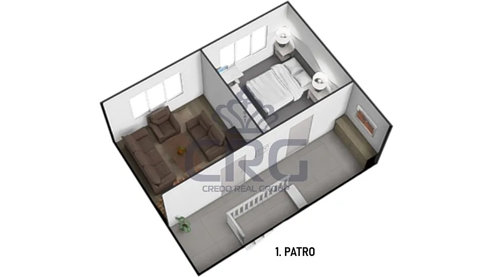 Po schodišti vystoupáme do prvního patra chodby o velikosti cca 11,24 m2. Na patře jsou dvě místnosti, z toho jedna je vybavena krásným funkčním krbem o celkové výměře 15,20 m2. Tato místnost je plně vybavena nábytkem. Druhá místnost má celkovou plochu cca 17,26 m2. V přízemí vedle schodiště nalezneme sklep o výměře cca 4,80 m2.