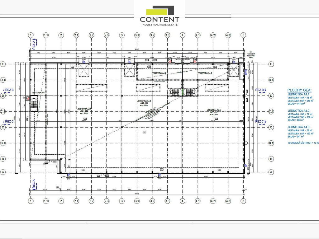 - hala (A4) 3296 m² ve výstavbě, k dispozici 02/2026