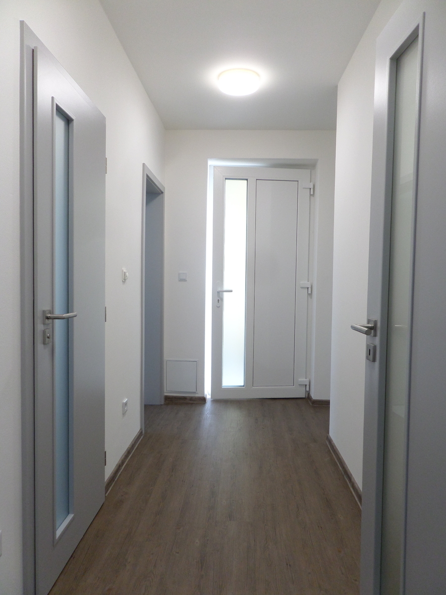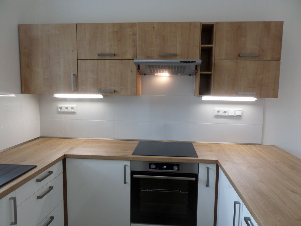 V moderní čtvrti na okraji obce Postřelmov nabízíme k pronájmu byt v dispozici 2+kk s příslušenstvím. Součástí nájmu je také k bytu náležící parkovací stání před domem. Bytové prostory k nájmu se nachází v 1.patře (2.NP) zděného zatepleného domu, který s ostatními nově postavenými okolními domy v rámci developerského projektu byl kolaudován před necelými 3 roky. Byt je standardně vybaven kuchyňskou linkou s vestavěnou elektrickou varnou sklokeramickou deskou a pečící troubou, osvětlením ve všech místnostech, koupelnou s vanou, umývadlem, skříňkou se zrcadlem nad ním a WC. Vytápění předmětného obytného prostoru je řešeno tepelným čerpadlem TOSCHIBA s dostatečným topným výkonem min. 3,2 kW prostřednictvím nástěnné vnitřní jednotky v obývacím pokoji a také s možností klimatizace v letních měsících. Kromě řízení si chodu jednotky ovladačem její režim lze řešit také pomocí chytrého telefonu přes WIFI modul. Druhou možností vytápění obytných prostor jsou podlahové kabelové topné rohože FENIX s regulací samostatnými termostaty a elektrický topný žebřík v koupelně. Teplou užitkovou vodu pro bytovou jednotku zajišťuje v koupelně umístěný elektrický nástěnný bojler s kapacitou 160 l. K bytu dále náleží před domem stojící zděná úložná kolna. Bonusem pro nájemce je možnost venkovního posezení na terase před vstupem do bytu, která je orientovaná na východ a část pozemku přilehlého k domu s bytem. Připojení k internetu je v dané lokalitě vyřešeno sítí optických kabelů. S nájmem je spojena úhrada jednoměsíční jistoty (kauce). Služby dodávky vody, elektřiny, připojení k internetu,… si zajišťuje a hradí nájemce sám.