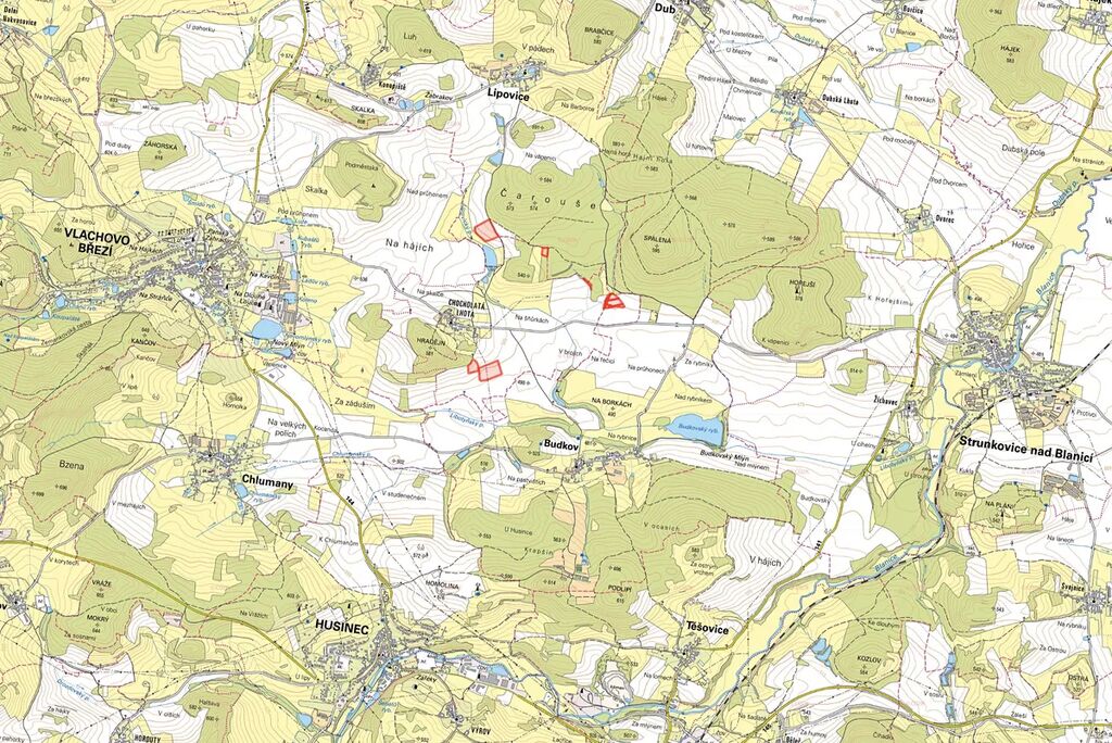 Nabízím k prodeji soubor deseti zemědělských a lesních pozemků ve výlučném vlastnictví, nacházejících se ve dvou katastrálních územích: Chocholatá Lhota (obec Vlachovo Březí) a Lipovice (okres Prachatice). Pozemky jsou zapsány na listech vlastnictví č. 186 a 669 a jedná se o parcely č. 271, 297, 365, 368, 264, 265, 266, 267, 268 a 291/1.