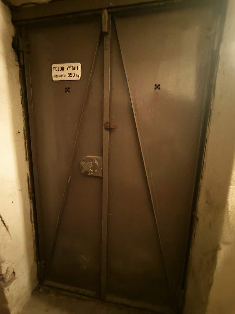 1. PP budovy - sklepní prostory - 275m². Součástí je nákladní výtah s nosností 350 kg - bez revize. Vesklepních prostorech je v současnosti sklad nepotřebných věcí z restaurace.