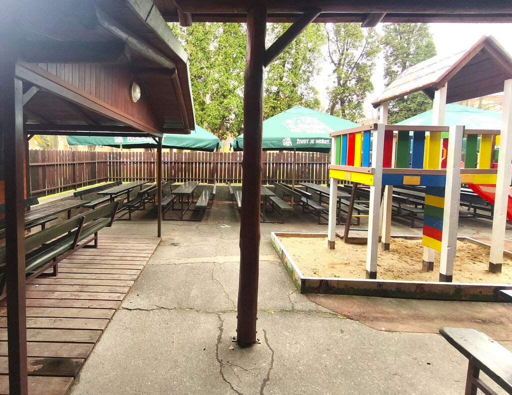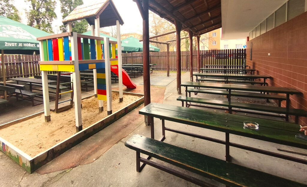 1. NP budovy - 382 m² - k dnešnímu dni restaurace s kulečníkovovu hernou a opolocenou zahrádkou s posezením. V zadní uliční části je skladovací rampa 31 m². Prostor je v nájmu.